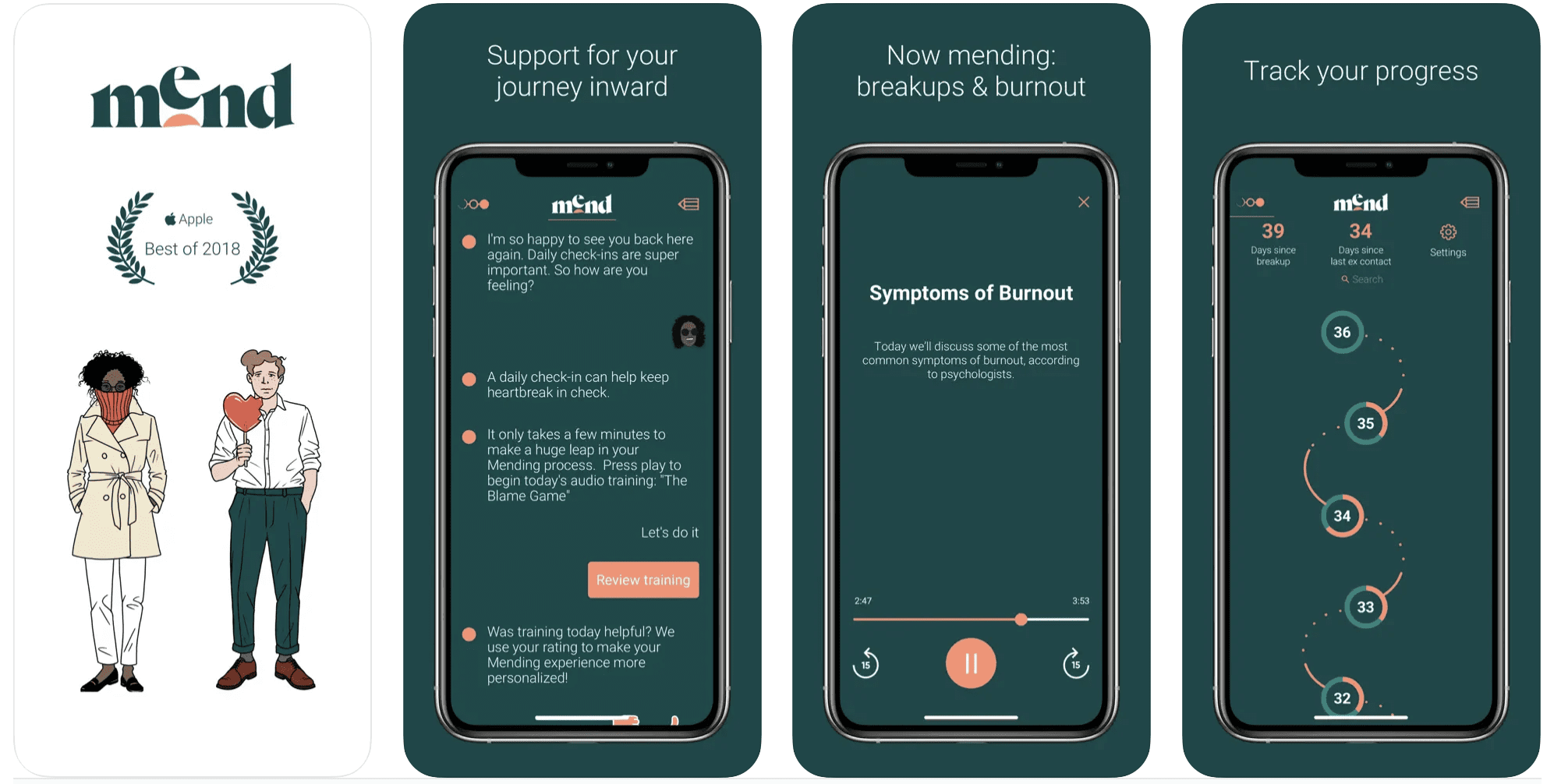 Available online and on iOS, Mend stands out by focusing on the emotional impact of a breakup. Through daily check-ins, audio training sessions led by mental health and wellness experts, and guided journaling, users are encouraged to prioritize their well-being. The app encourages the cultivation of healthy habits that enable individuals to navigate and process their emotions effectively.