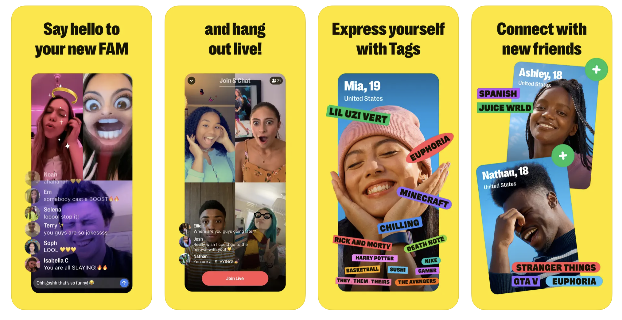 Yubo is a social platform crafted for Gen Z users and is popular among 13- to 25-year-olds (which makes up 99% of its user base). There are separate communities for those aged 13 to 18 and those over the age of 18. It caters to those who value a slow and steady approach to building friendships, and who want to meet people in other parts of the world.