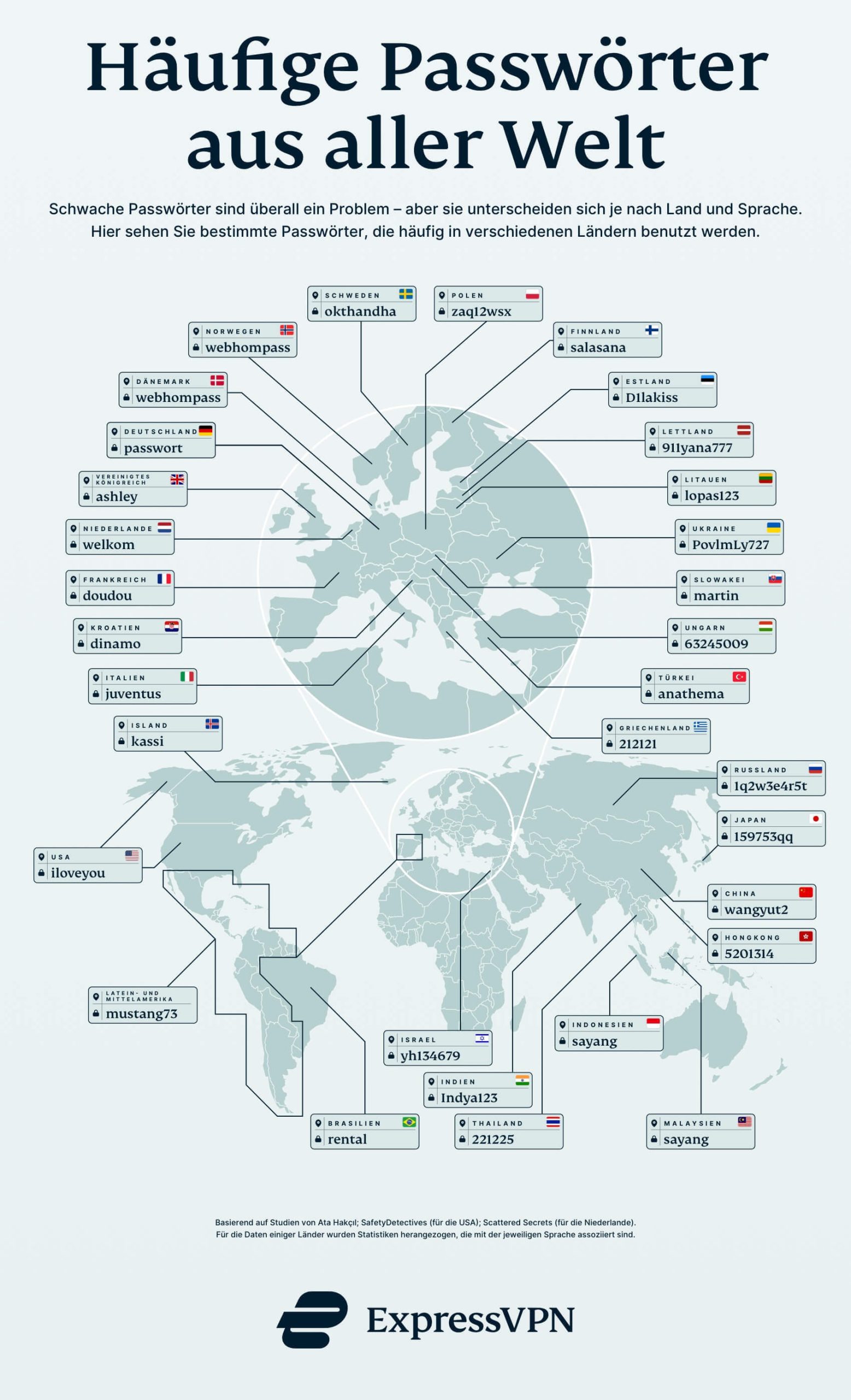 Infografik: Die häufigsten Passwörter nach Ländern