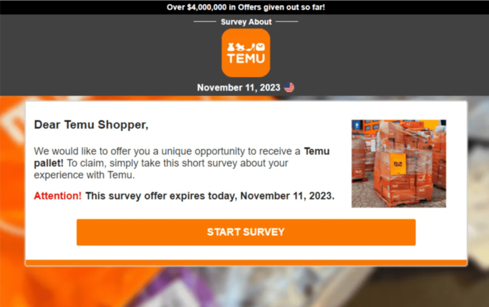 “Complete esta rápida encuesta y reciba un cupón de 100 USD para su tienda favorita.” ¿Quién no querría eso? Pero estas estafas de encuestas están diseñadas para recopilar la mayor cantidad posible de información personal sin ofrecer nada a cambio. La encuesta parece lo suficientemente simple, pero en cuanto entrega sus datos, desaparecen, utilizados por estafadores o vendidos a terceros. Y peor aún, el cupón prometido nunca llega, sin saber dónde fueron a parar todos sus datos.