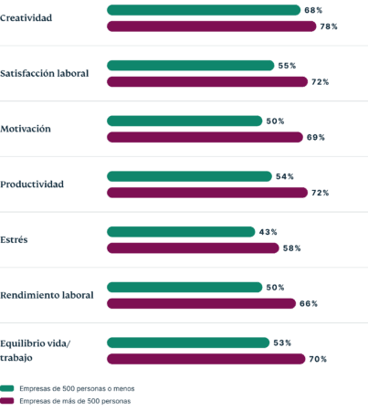 Los empleados de empresas con más de 500 empleados son los más interesados en un entorno laboral inmersivo, en contraste con las de menos de 500 empleados. Por otra parte, los empleados de las grandes empresas mostraron menos interés por trabajar en el metaverso.