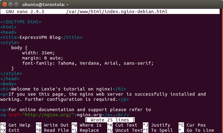 sudo nano /var/www/html/index.enginx-debian.htmland refresh your browser.