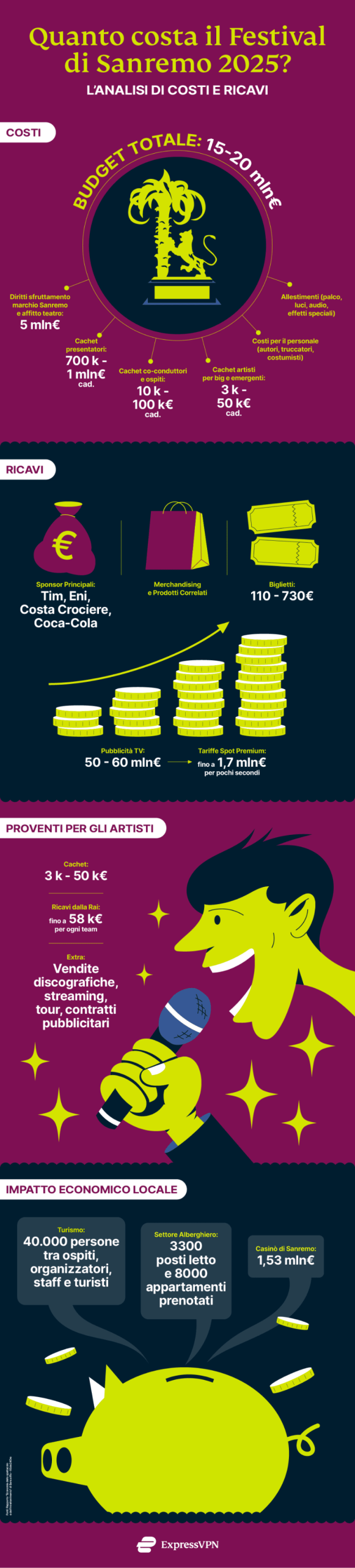 Insomma, un evento imperdibile per tutti, dagli italiani all’estero agli stranieri appassionati di musica italiana! Quest’ultimi non possono perdersi questo appuntamento lasciandosi scoraggiare dalle restrizioni geografiche: per questo, ancora una volta, sottolineiamo la necessità di installare una VPN per garantire la privacy durante la navigazione e per accedere a tutti i contenuti nell’universo della kermesse.