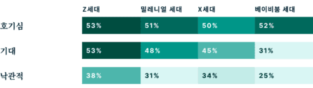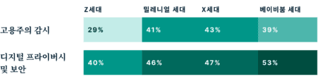 또한 Z세대는 메타버스 내 직원 감시, 디지털 프라이버시, 보안에 대해 염려할 가능성이 가장 낮습니다.