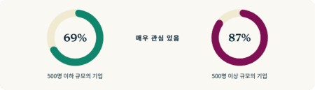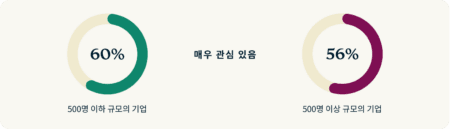 직원 수가 500명 이상인 기업의 고용주는 직원 수가 500명 미만인 기업의 고용주에 비해 몰입형 근무 환경에 관심이 더 많습니다. 반면에 대기업의 직원들은 메타버스 내 근무에 관심이 있다고 말할 가능성이 더 낮습니다.