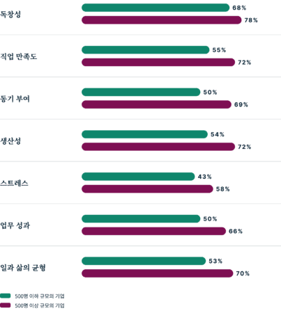 대기업, 중견기업, 중소기업 간의 극명한 차이로 인해 메타버스로 전환 시 중소기업이나 중견기업의 직원들의 사기가 더 높아질 수 있습니다.