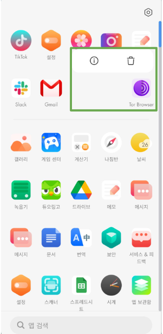- 아이콘을 길게 누르면 메뉴가 표시됩니다.