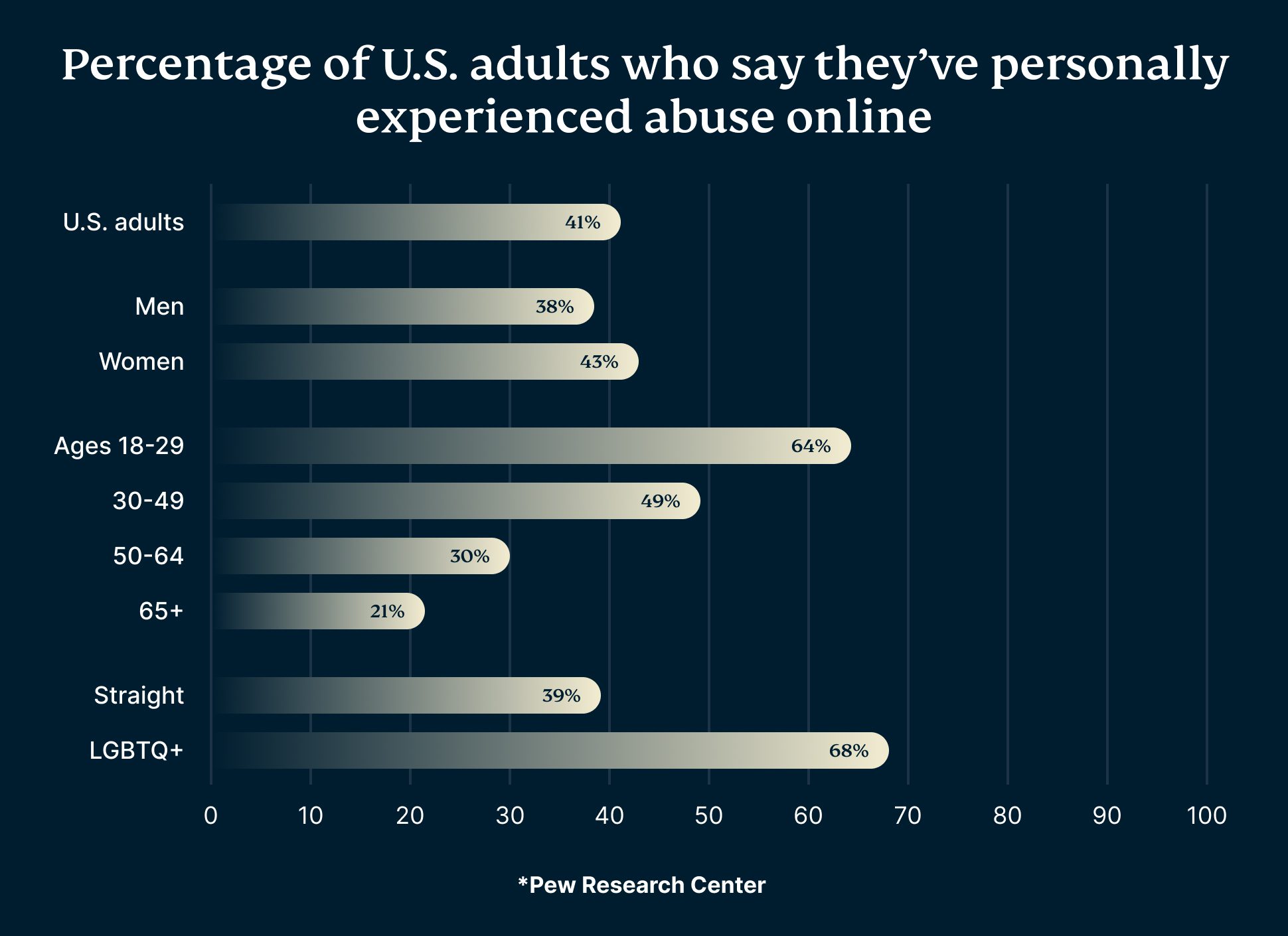 Uit een onderzoek van het Pew Research Center blijkt dat maar liefst 4 op de 10 internetgebruikers in de VS wel eens te maken heeft gehad met een vorm van online intimidatie, variërend van minder ernstige gevallen zoals schelden tot meer ingrijpende vormen zoals stalken. Uit een onderzoek van Statista bleek dat 51% van de Britten wel eens te maken heeft gehad met cyberpesten en 36% wel eens getrolld is online.
