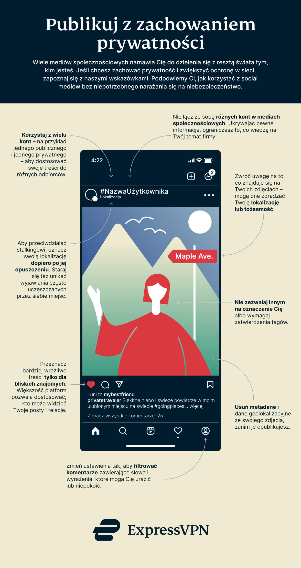Infografika: zachowaj bezpieczeństwo i prywatność w mediach społecznościowych