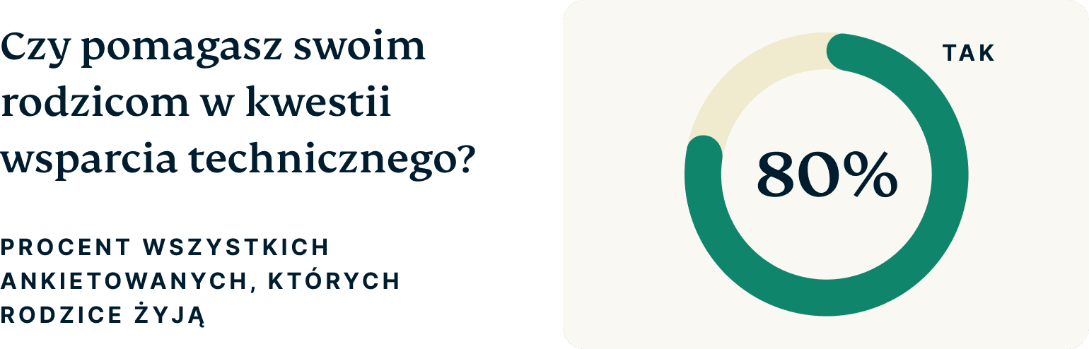 Czy pomagasz swoim rodzicom w zakresie wsparcia technicznego? (% ankietowanych z rodzicami, którzy odpowiedzieli „tak”).