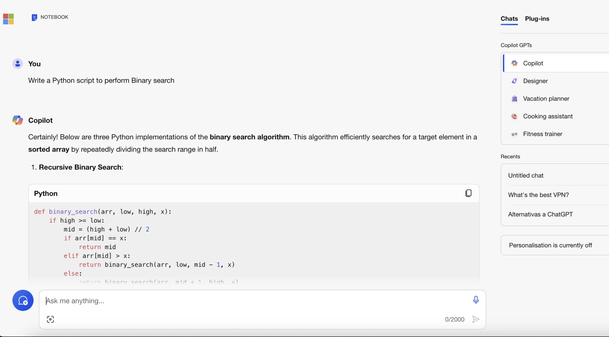 Like ChatGPT, Copilot's integration with Bing allows it to access the internet for real-time information. However, when compared to ChatGPT, Microsoft Copilot offers a more focused approach, tailored specifically for enhancing productivity within the Microsoft 365 ecosystem. This means Copilot can leverage the entire suite's capabilities to perform tasks, from editing a document in Word to analyzing a dataset in Excel. Another key distinction is Copilot's adherence to Microsoft 365's security and compliance standards, which makes it a safer option for users concerned about data privacy and protection.
