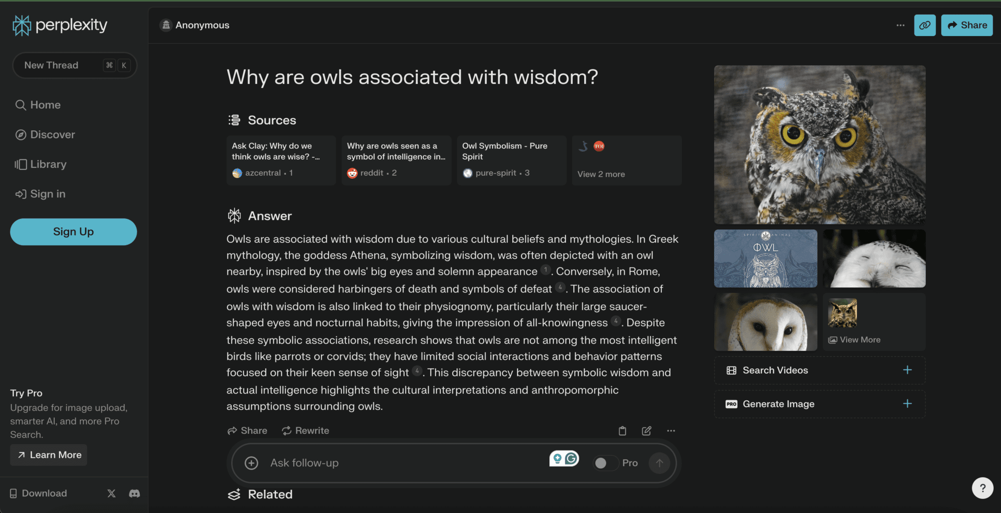 Perplexity AI is a chatbot-style search engine that aims to answer questions posed in natural language. It sources information from various web locations to deliver accurate responses to users. The platform enables follow-up questions, ensuring a comprehensive understanding by maintaining context from previous interactions. Its backend utilizes large language models trained on extensive text and code datasets, which empowers it to provide detailed answers across a broad spectrum of inquiries.