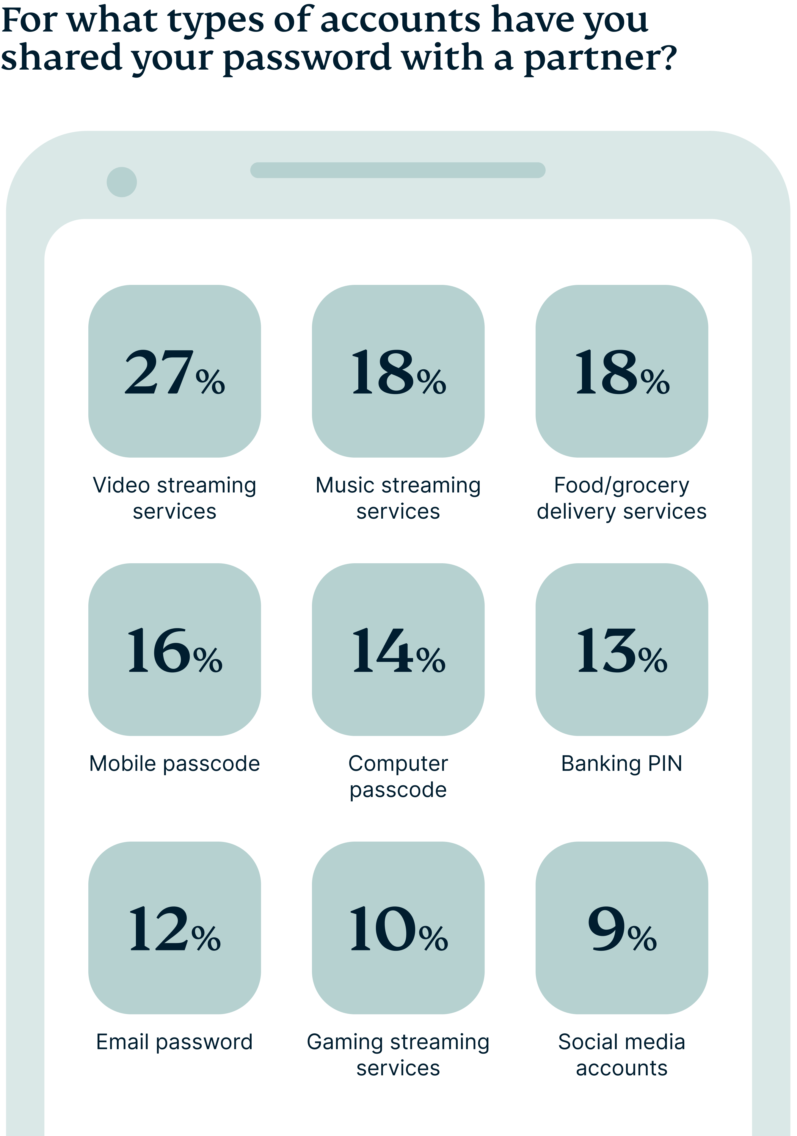 The fact is, the risks of sharing passwords with your partner goes beyond your relationship. Our research found that 8% of respondents have shared someone else’s login without their consent and 16% have had their own login information shared without agreeing to it.