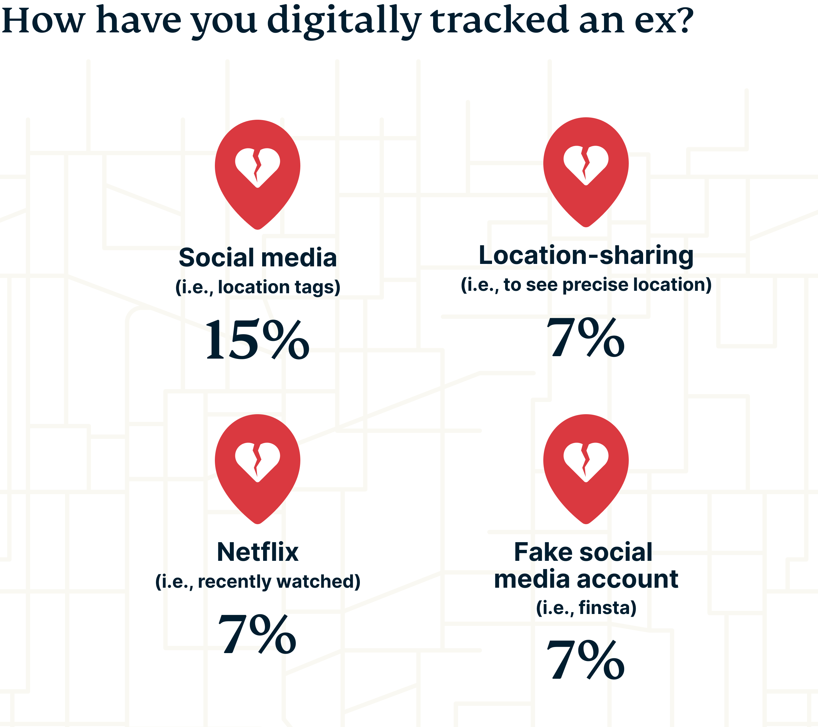 Alarmingly, 27% of Brits go as far as using tech (including social media and financial platforms) to digitally track their ex’s activity post-breakup.