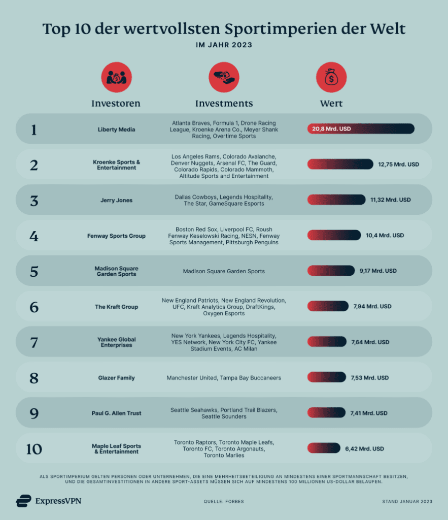 Ob Heuschrecke oder Owner for a lifetime – in folgender Abbildung sind die größten Sportimperien zusammengefasst: