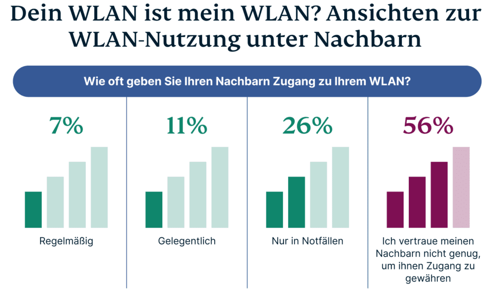 • Mehr als die Hälfte der Befragten gibt Passwörter weiter und etwa ein Drittel bittet ihre Nachbarn um Zugang