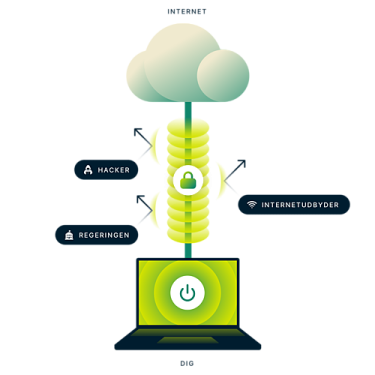 Data inde i tunnelen er også krypteret således, at det kun er den tiltænkte modtager, der kan dekryptere dem. Det holder indholdet af din internettrafik helt privat. Selv din internetudbyder kan ikke se den.