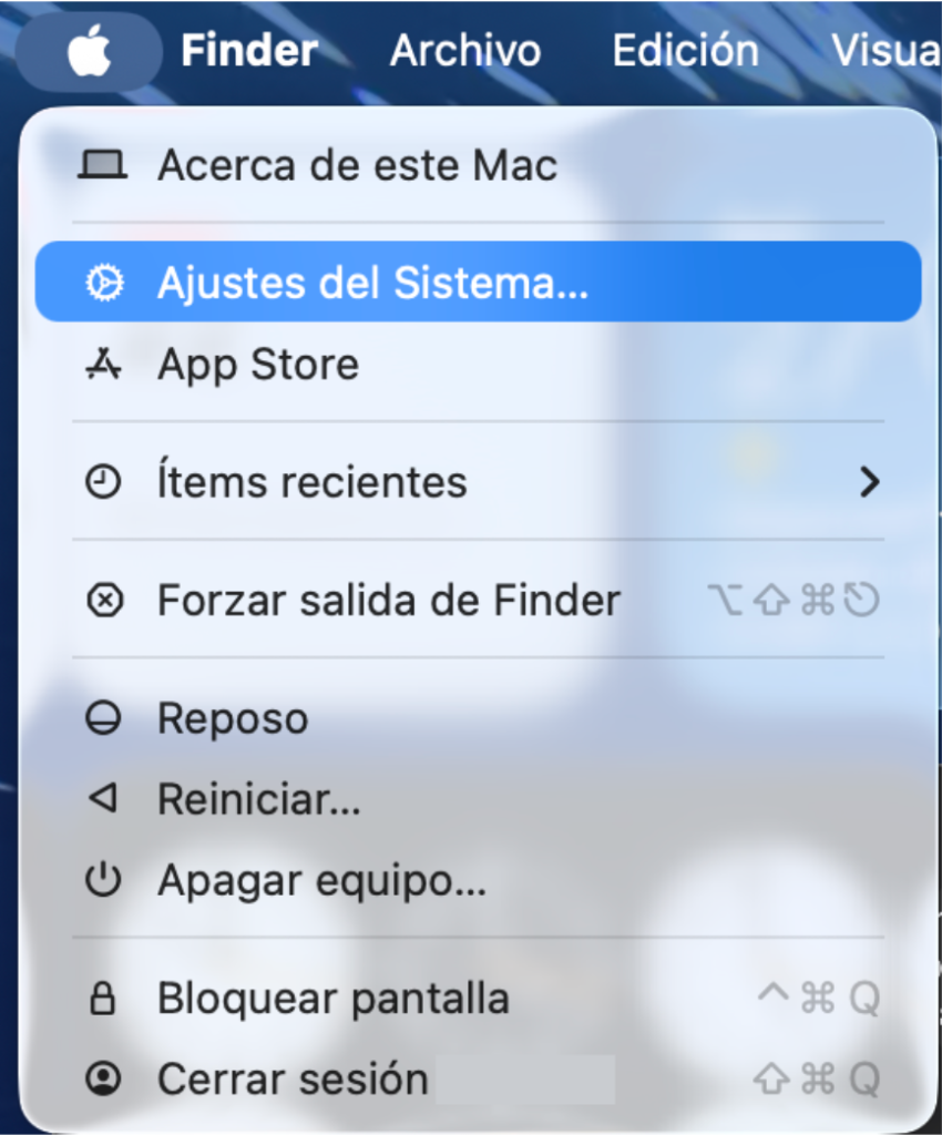 - Haz clic en el Logotipo de Apple y ve a Configuración/preferencias del sistema.