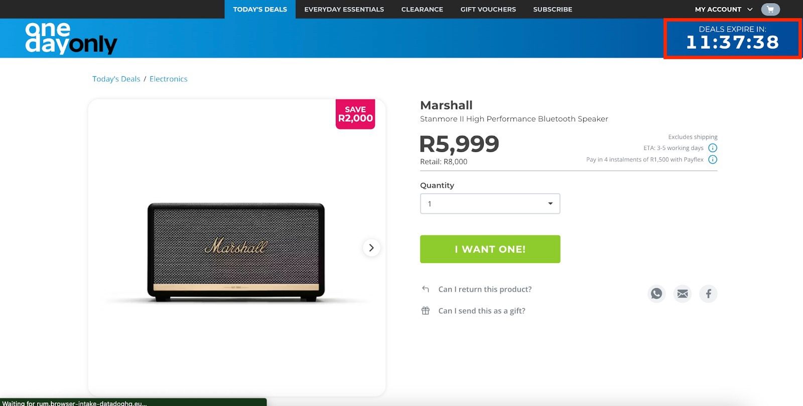 これは期間限定オファーに切迫性を作り出します。カウントダウンタイマーは、実際に時間制限がない場合(例えば、時間切れになった後にセールが単純に延長されるなど)でも、採用されることがあります。戦略は希少性に対する自然な人間の反応を刺激し、逃さないようにするために顧客にすばやく行動するように促します。オンライン小売業者はすばやい購入を促すためにセールイベント中にカウントダウンタイマーをよく使います。
