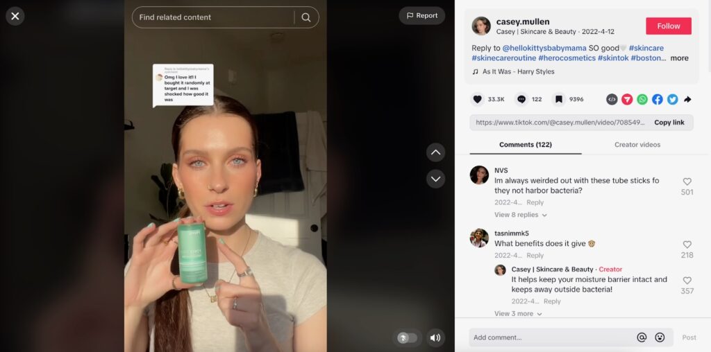 実店舗とオンラインの両方で戦略的な製品提供をすると、予定よりも多く購入するように顧客を引き込むことができます。ブランドが利用する共通戦略は、テレビ番組や映画に製品を登場させることです。あるいはインフルエンサーにも提供し、ソーシャルメディアの投稿で製品を使用してもらうことで、視聴者の購入決定に大きく影響を与えることができます。例えば、Hero Cosmeticsは効率的にTikTokを利用して、その視聴者をターゲットにしています。