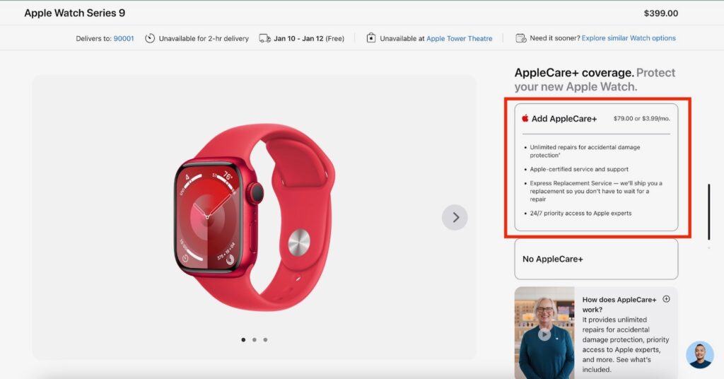 チェックアウト時に関連アイテムと追加アイテムを提案すると、平均注文金額を著しく上げることができます。「よく一緒に購入されている商品」などのフレーズがこの戦略の一般的な例です。例えば、Appleのウェブサイトでは、製品の付属品や延長保証を提案して、よくアップセルを取り入れています。