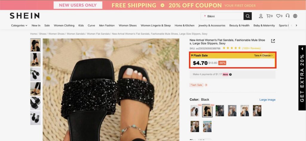 これは期間限定セールイベントで、切迫性を作り出して顧客がすばやく購入するように促します。ASOS、Shein、H&Mなどのファストファッションウェブサイトは、フラッシュセールに特化していて、期間限定で製品やサービスでお買い得品を提供しています。