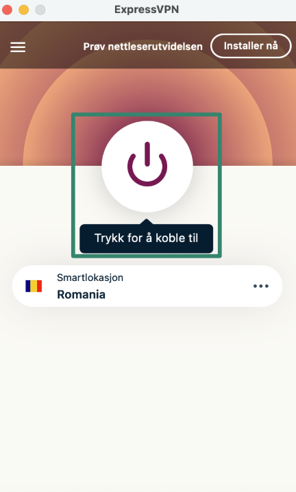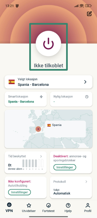 5. Klikk på «Hurtigtilkobling» for å koble til og skjule IP-adressen din.