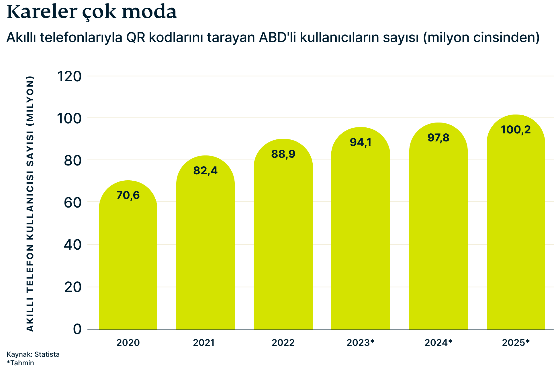 Bu siyah beyaz desenlerin, uygunlukları ve kolay kullanımları sayesinde yüksek olasılıkla günlük hayatımızın birçok yerinde karşımıza çıkmaya devam edecek. Hatta, eMarketer,  2022’de kaydedilen istatistiklerle karşılaştırıldığında, QR kodlarını tarama sayısının 2035’te %19 artarak 100 milyon taramaya ulaşacağını öngörüyor.